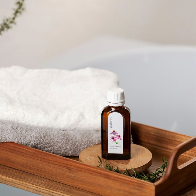 エキナセアを中心に、ローズマリーやシベリアモミ、ユーカリ、ハイビスカス、ジンジャー、ジュニパーなど、自然の恵みを贅沢にブレンドした入浴アイテムです。